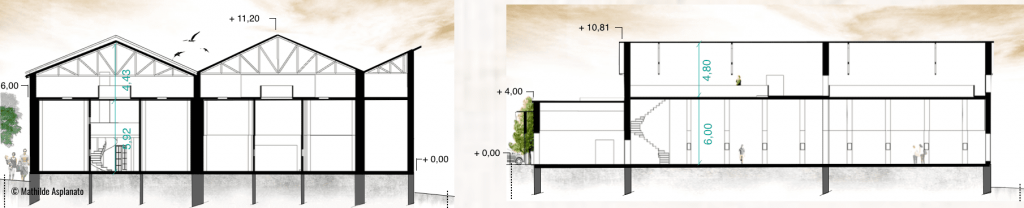 Les façades ont été travaillées de manière à apporter le maximum de luminosité et par des formes d’ouverture qui font rappel à la nature du bâtiment, la dimension et la forme des fenêtres informent sur la nature de l’enveloppe, l’espace et la façade sont en quelques sortes libérés et offrent la possibilité d’une nouvelle dynamique.
