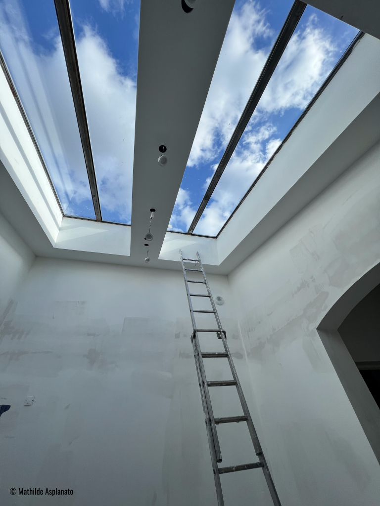 Beaucoup de luminosité et de relation dedans/dehors dans cette espace grâce aux nombreuses ouvertures et verrières qui viennent apporter un rythme à l’espace et aux façades. « L’architecture est un être vivant, un être mouvant. La lumière peut y entrer par-dessus ou par dessous, elle peut être directe ou reflétée. La lumière donne du mouvement à l’architecture, lui insuffle la vie ».